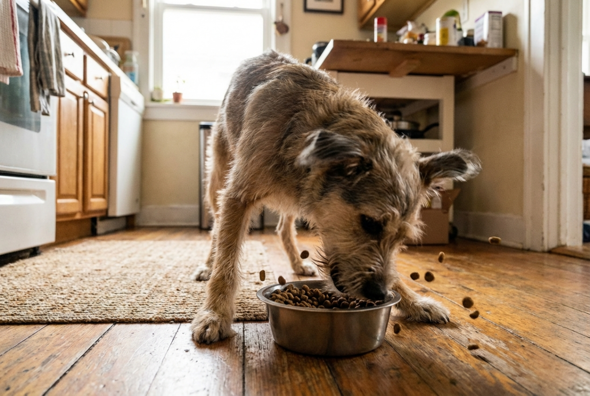Co dělat, když pes hltá granule? Praktické tipy + řešení
