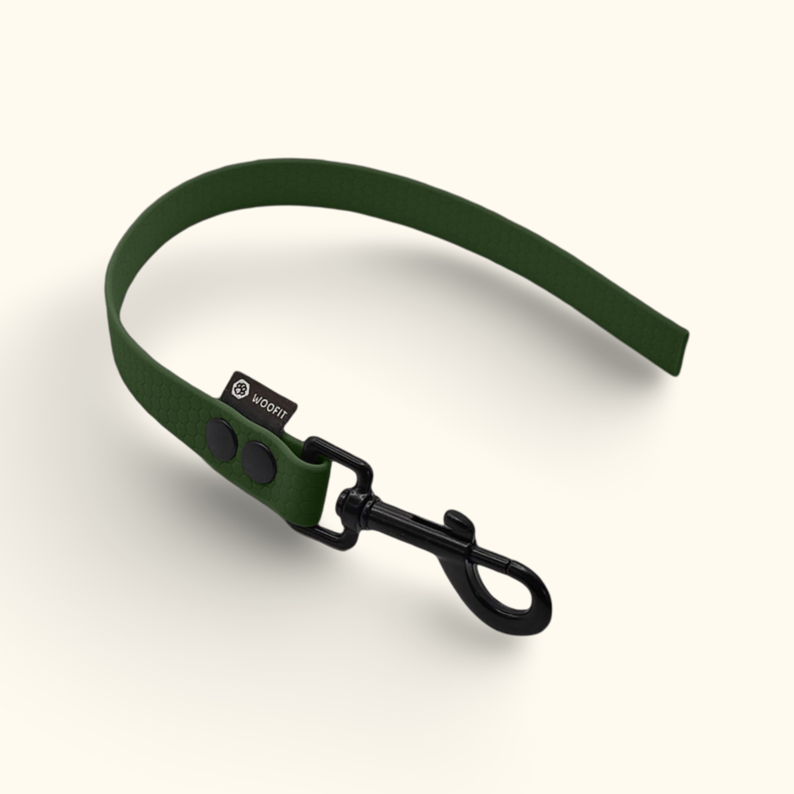 Field ladí s našimi obojky — doporučujeme sladit do setu pro maximální funkčnost i styl. Na obojky můžete připevnit i naši tichou silikonovou psí známku Woofit Tag, která necinká a skvěle doplní Hexa vzhled.
