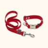 Sladěný obojek s vodítkem s ultralehkou bezpečnostní karabinou s nosností až 400 kg. Voděodolný popruh a kvalitní kování. Ruční výroba v ČR.