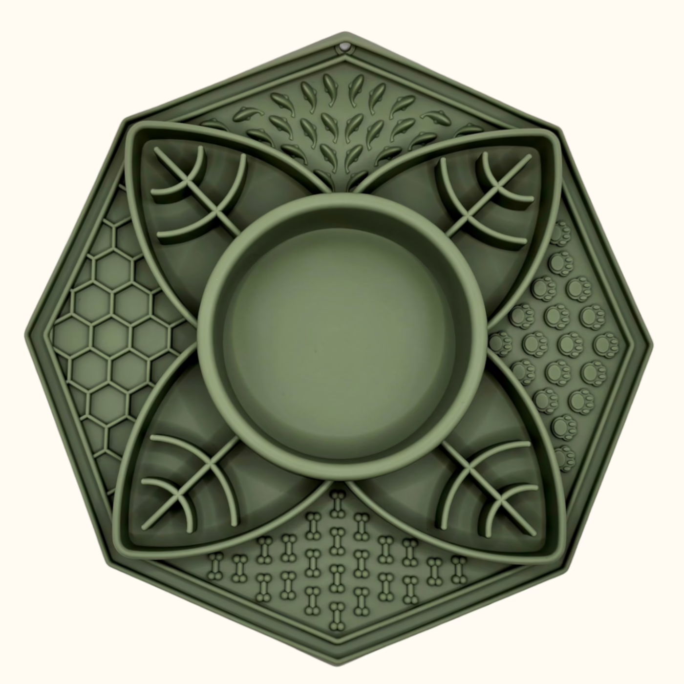 Díky centrální misce a čtyřem hlubokým segmentům můžeš servírovat hlavní chod spolu s různými doplňky nebo pamlsky v jedné podložce. Perfektní pro psy, kteří si zaslouží gurmánský zážitek.