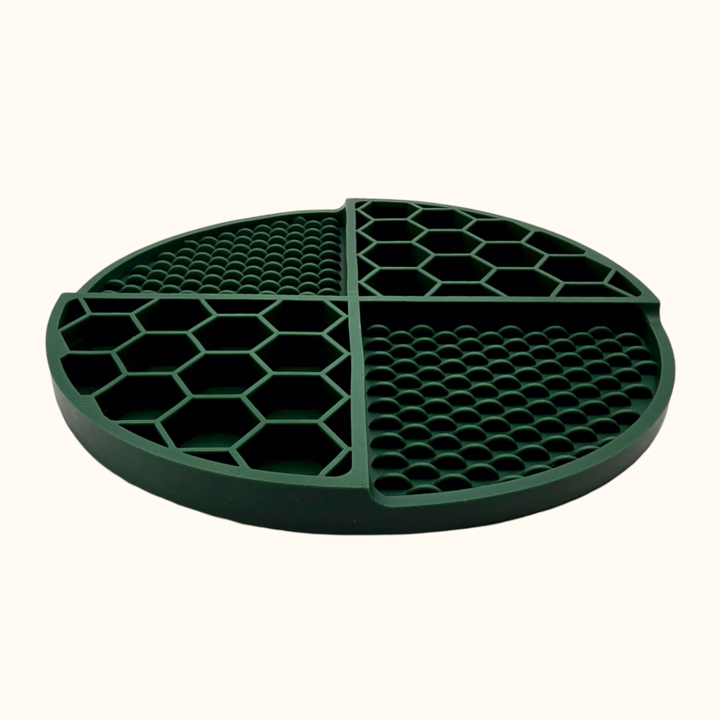 Podložka je chytře rozdělená do čtyř různých zón s odlišnou hloubkou a texturou. To znamená nekonečné možnosti pro tebe i tvého chlupáče! Můžeš v ní kombinovat jeho oblíbené tekuté dobroty jako jogurt, vývar nebo tvaroh s pevnými pamlsky, piškoty nebo kousky masa. Díky této variabilitě zůstane každé lízání novou zábavou.