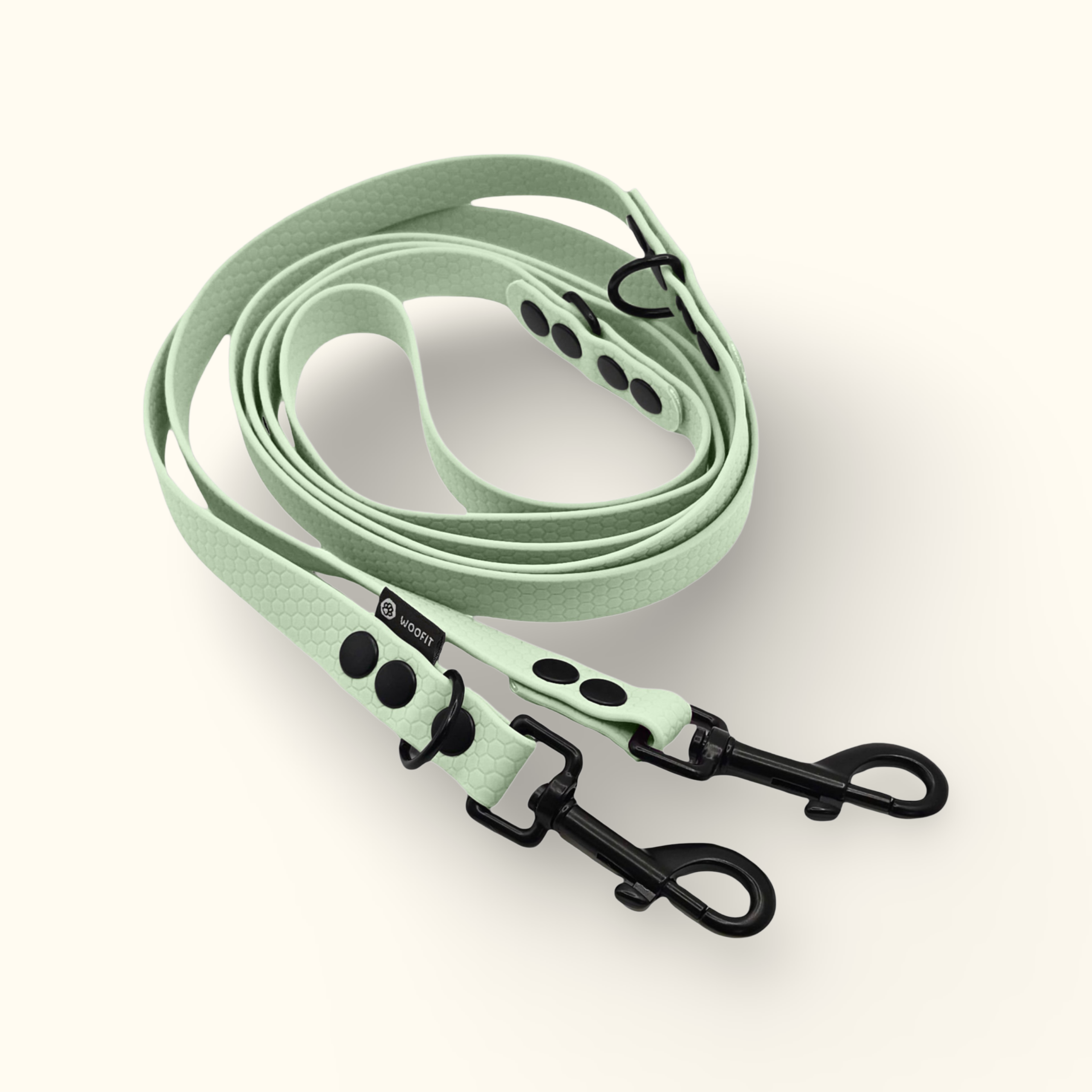 Přepínací Hexa vodítko Hike, které se přizpůsobí tomu, co právě potřebujete – dlouhé pro volnost, krátké pro kontrolu i handsfree pro volné ruce. Odolné, voděodolné, snadno omyvatelné a dokonale ladí s našimi obojky i tichou psí známkou Woofit Tag.