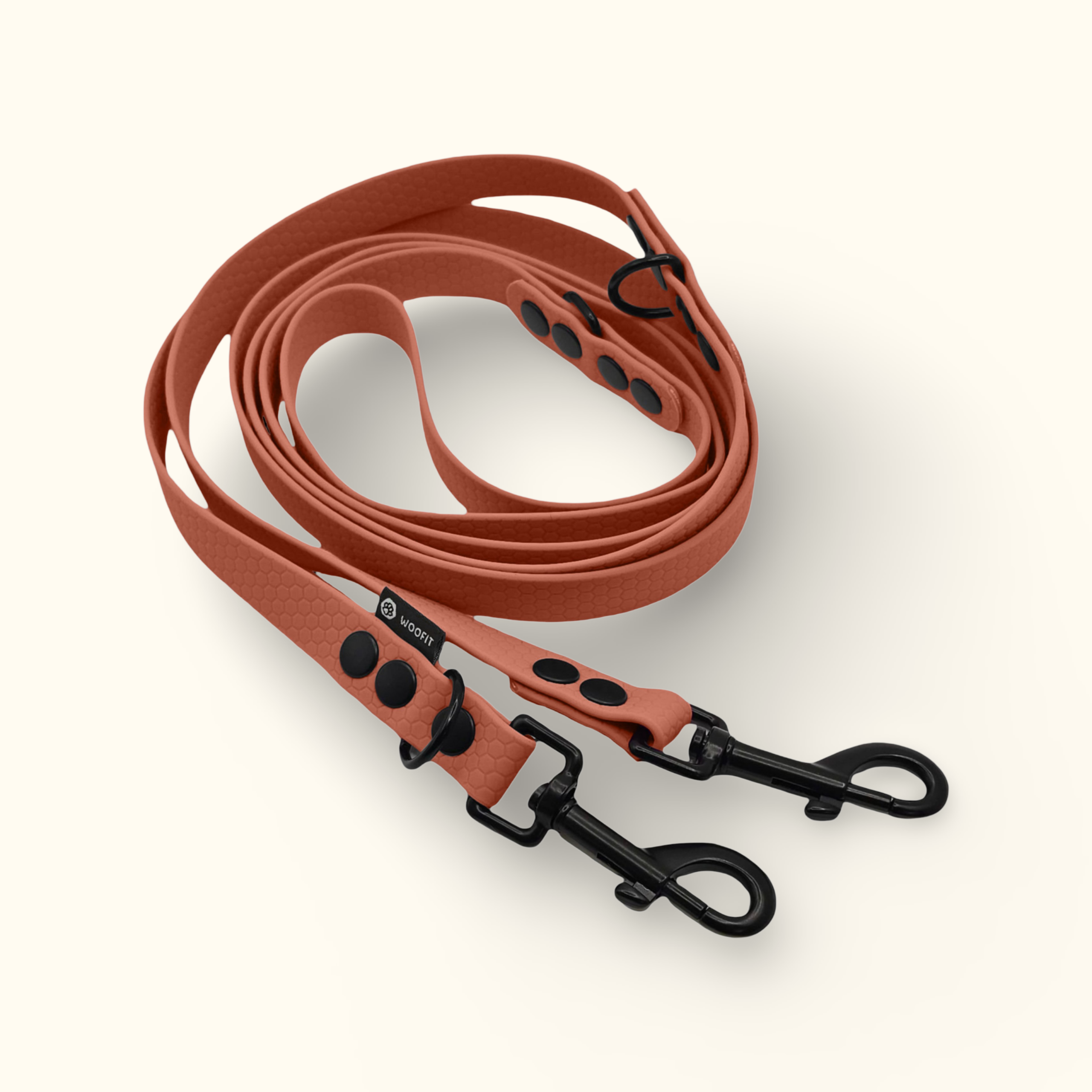 Přepínací Hexa vodítko Hike, které se přizpůsobí tomu, co právě potřebujete – dlouhé pro volnost, krátké pro kontrolu i handsfree pro volné ruce. Odolné, voděodolné, snadno omyvatelné a dokonale ladí s našimi obojky i tichou psí známkou Woofit Tag.