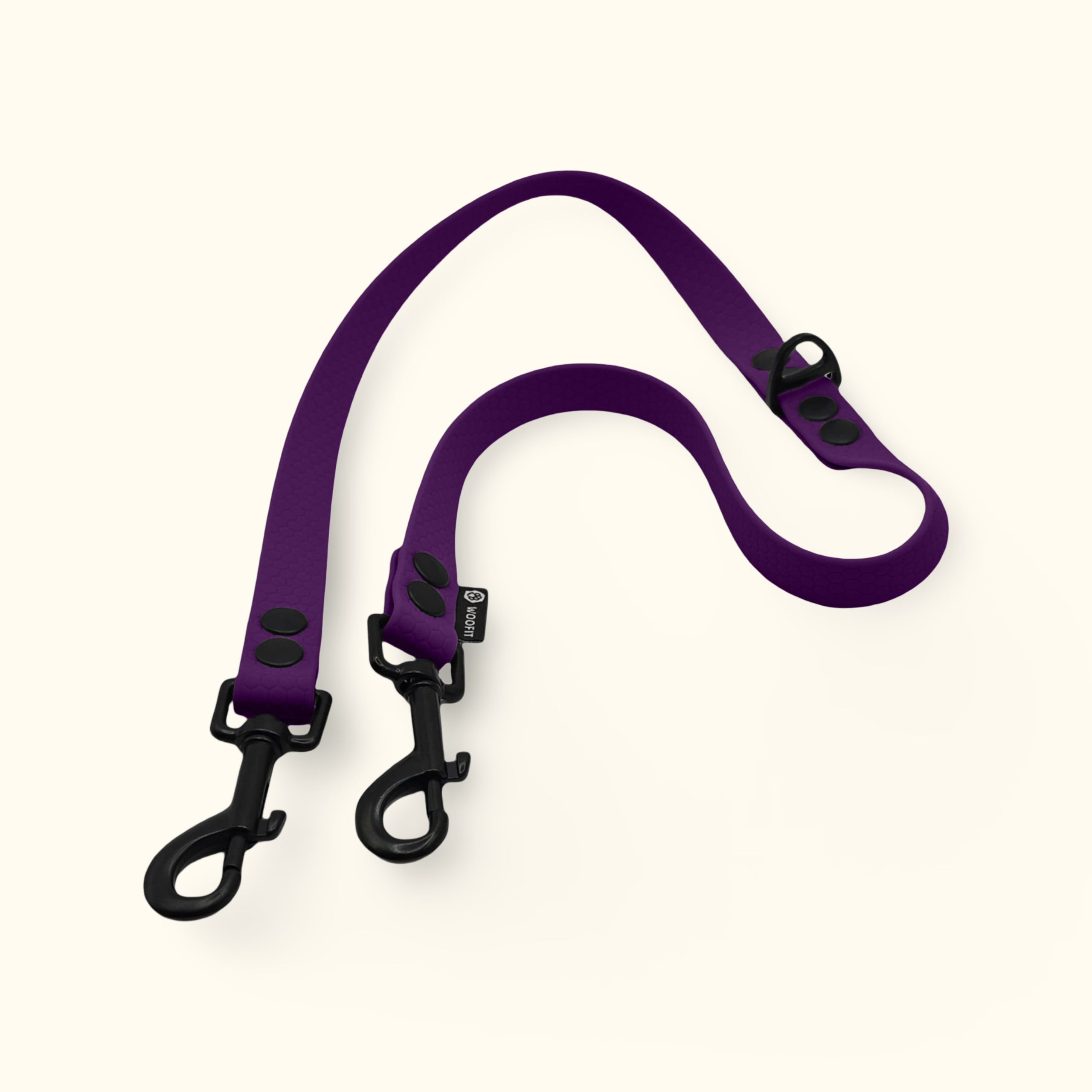 Rozdvojka Twin Trails perfektně ladí s našimi vodítky a obojky. Na obojky snadno připevníte i naši tichou silikonovou psí známku Woofit Tag.