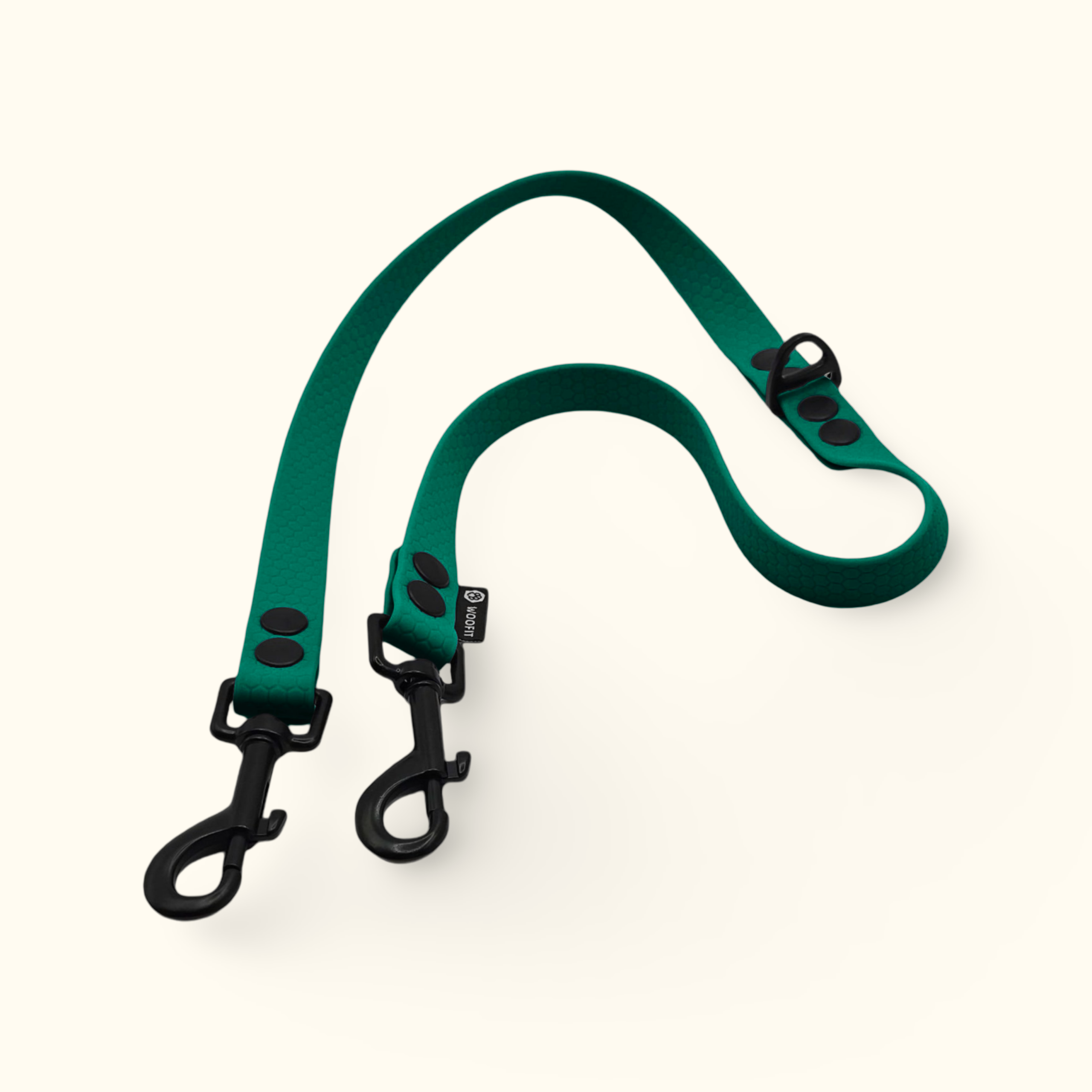Rozdvojka Twin Trails perfektně ladí s našimi vodítky a obojky. Na obojky snadno připevníte i naši tichou silikonovou psí známku Woofit Tag.