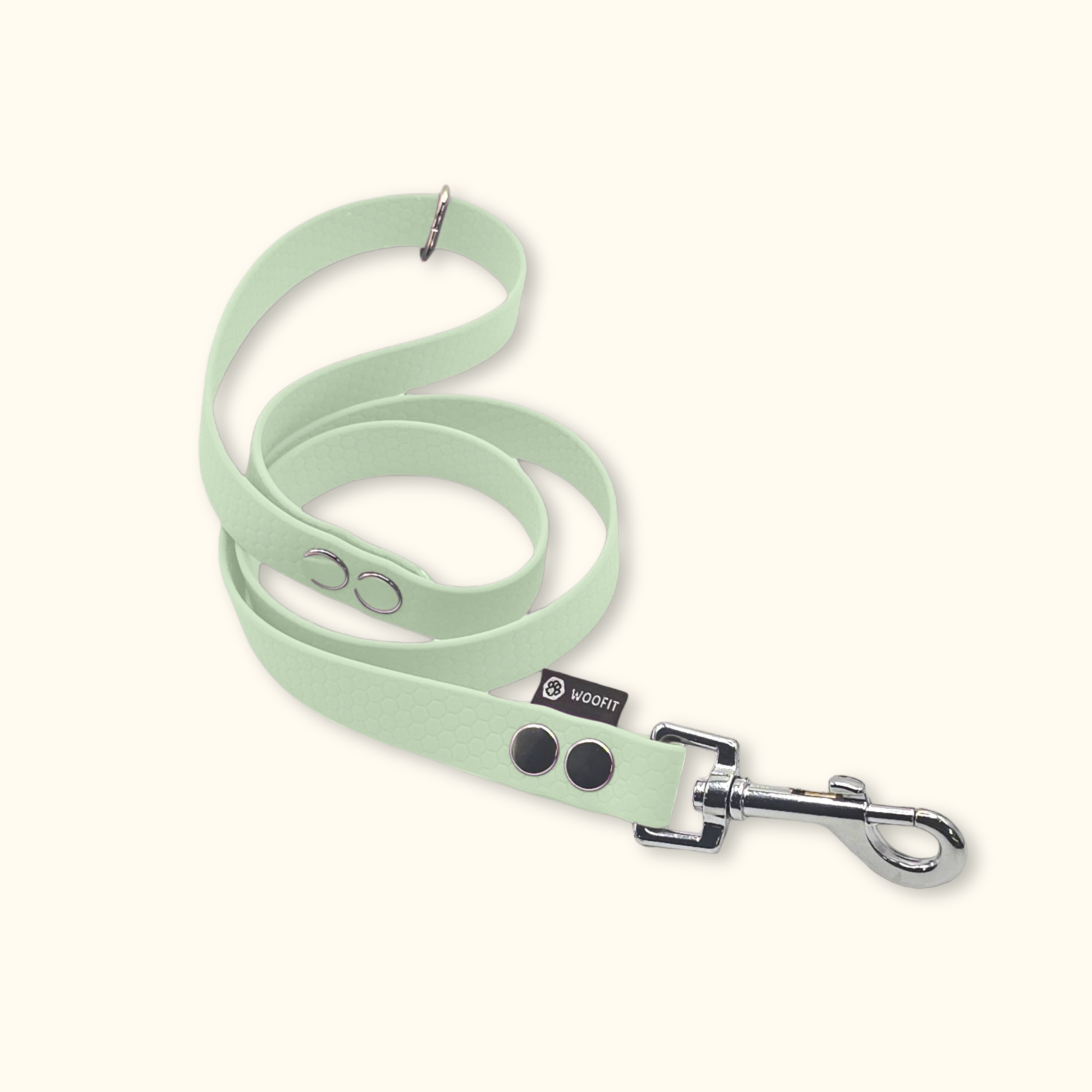 Praktické a voděodolné Hexa vodítko pro každý den. Pohodlné do ruky, pevné a s kovovým kroužkem, díky kterému si jej můžete při venčení snadno připnout kolem těla. Stylově ladí s našimi obojky i tichou psí známkou Woofit Tag.