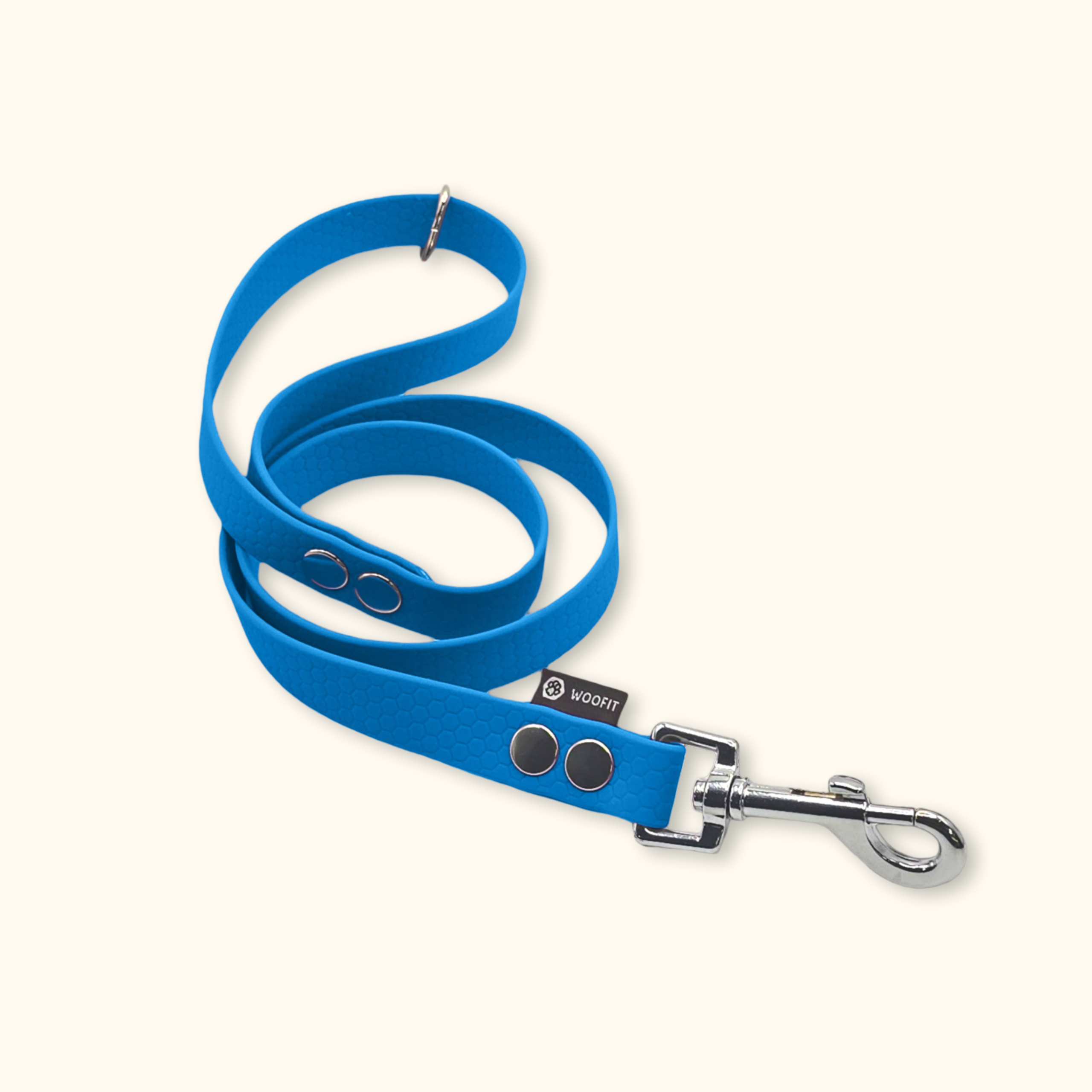 Praktické a voděodolné Hexa vodítko pro každý den. Pohodlné do ruky, pevné a s kovovým kroužkem, díky kterému si jej můžete při venčení snadno připnout kolem těla. Stylově ladí s našimi obojky i tichou psí známkou Woofit Tag.