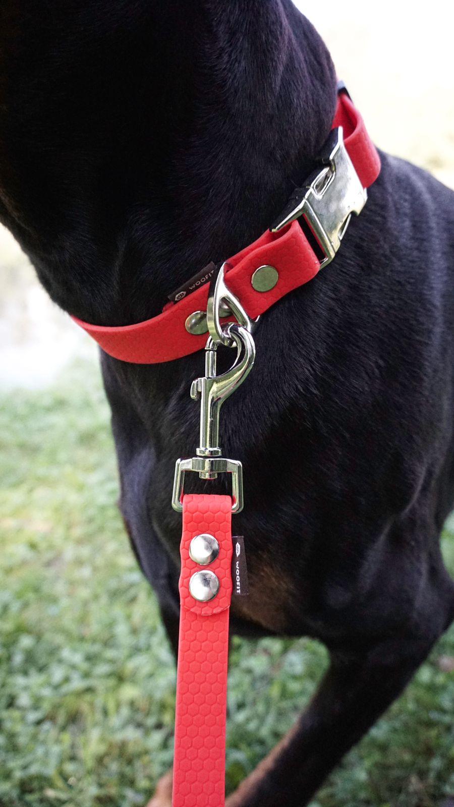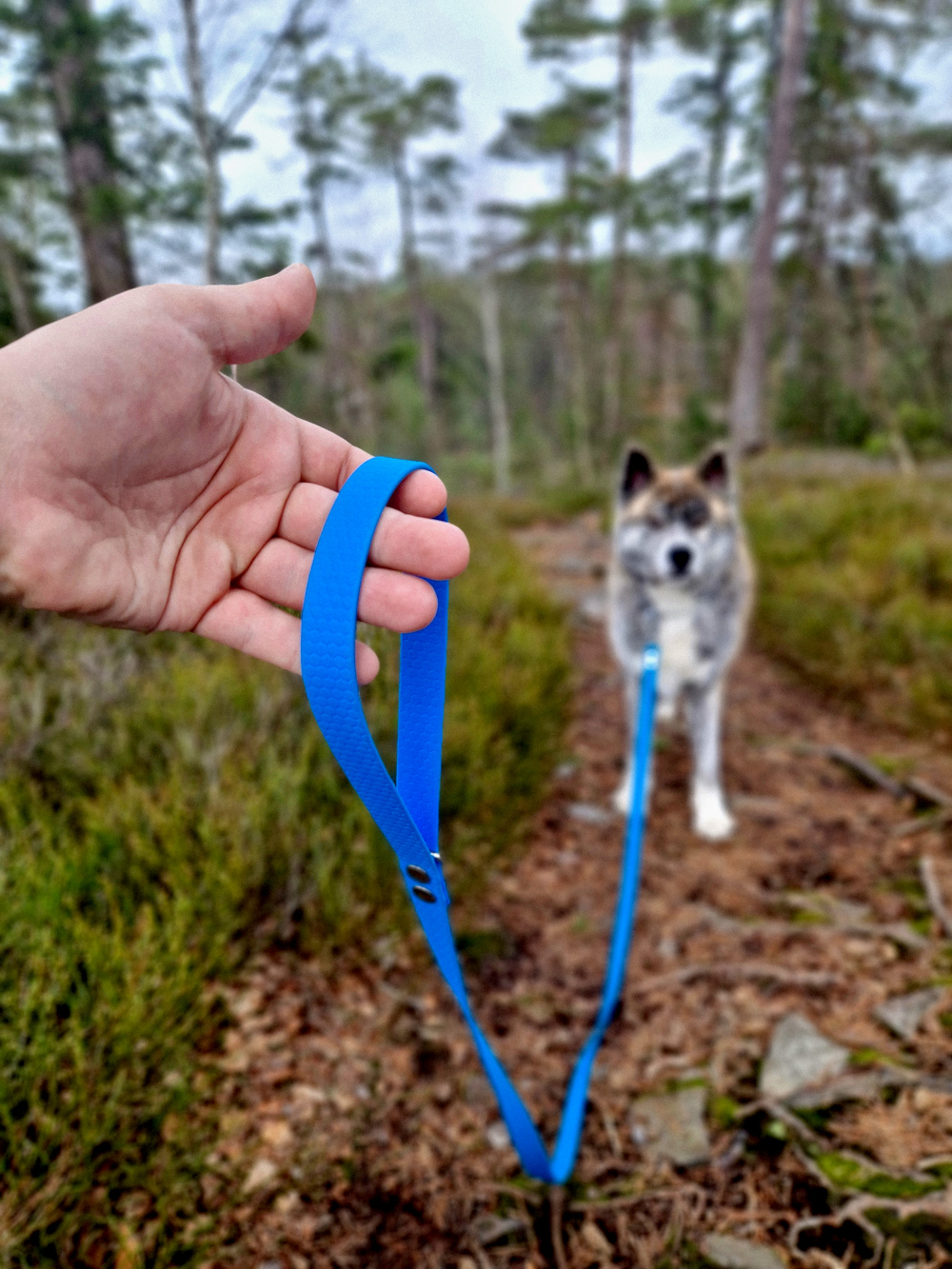 Vodítko je pevné, voděodolné a díky malému kovovému kroužku v ručce si ho snadno připneš kolem těla, když svého psa pustíš na volno.